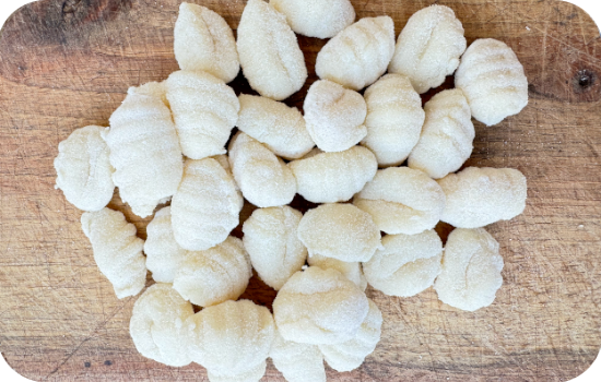 INGREDIENTI: Ricotta, zucca, sale, pepe, cannella, noce moscata, farina di grano tenero, farina di semola, uova.