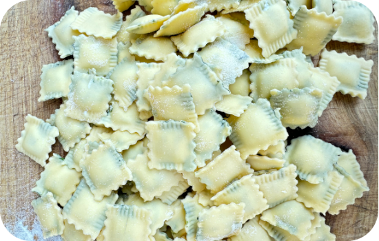 INGREDIENTI: Ricotta, parmigiano reggiano, spinaci, uova, sale, pepe, noce moscata, farina di grano tenero, farina di semola.
